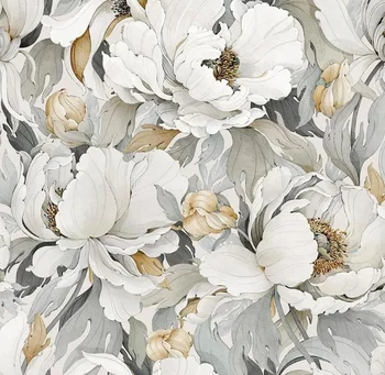 White Poppies Floral Modern Large Grey Peonies Flowers Vintage Wallpaper Wall Paper for Bedroom Renter Friendly