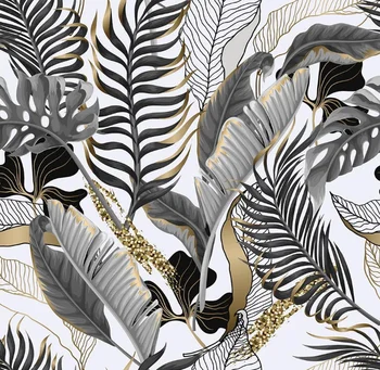 Black and White Golden Tropical Palm Plants Leaf Wallpaper Wall Paper for Kitchen Cabinet Renter Friendly