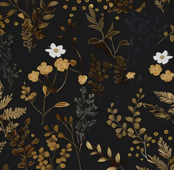 Black Floral Wallpaper Leaf Wallpapers Gold Leaf Contact Paper for Cabinets Waterproof Wall Paper for Countertop